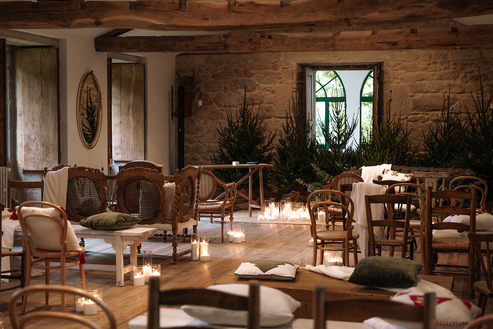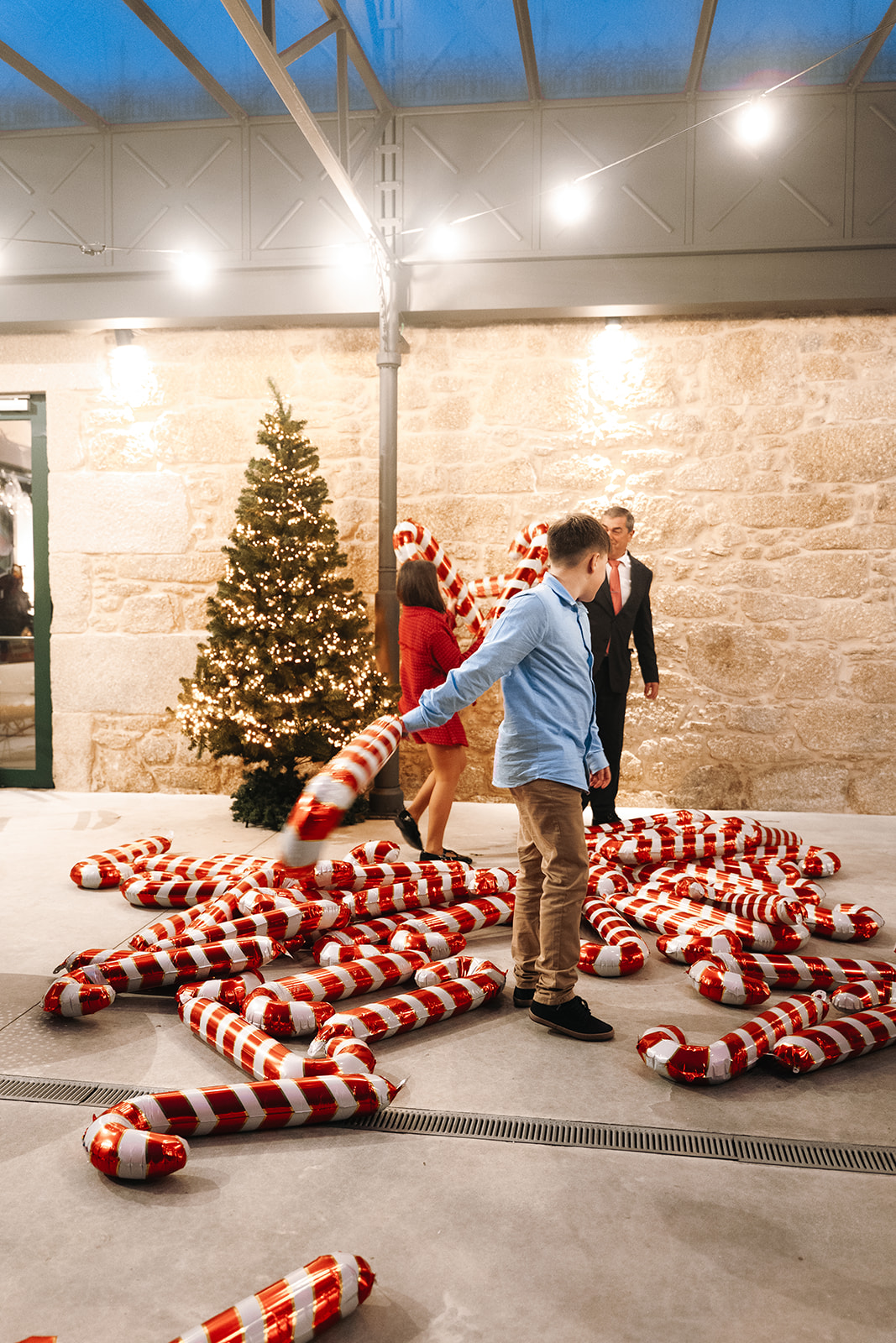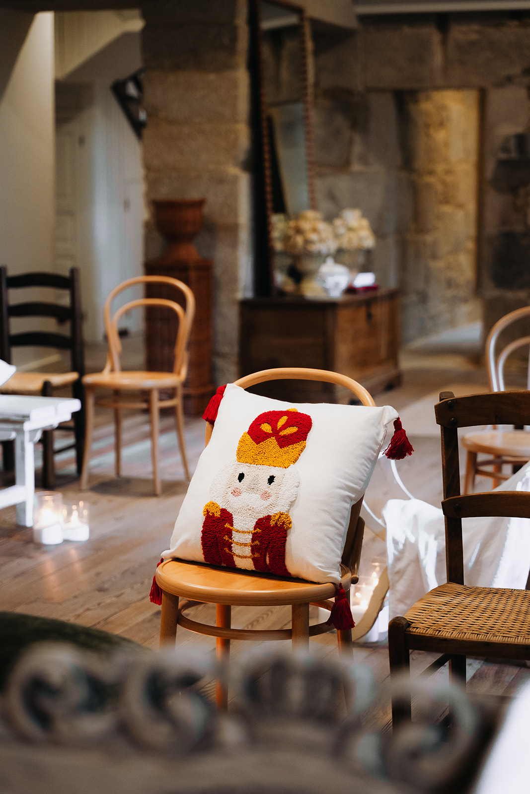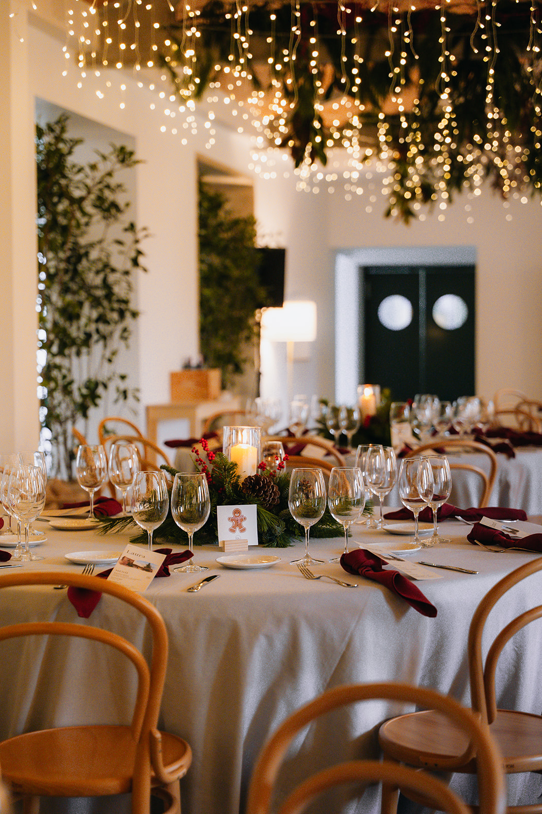 Diseñamos la decoración de todo el pazo como si la Navidad se hubiese instalado allí para quedarse. Desde una mesa de regalos navideños con detalles personalizados y postales para los invitados, hasta una decoración cálida y festiva que encajaba a la perfección con la arquitectura del pazo y el entorno gallego.