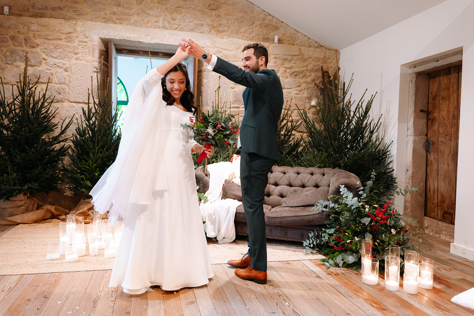 Cuando hablamos de una boda navideña en un pazo gallego, esto es exactamente a lo que nos referimos: una celebración con espíritu de Navidad, pero bien hecha, con diseño, personalidad y muchas ganas de sorprender!